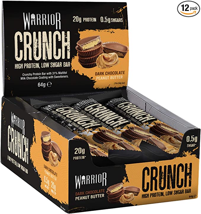 Warrior Crunch Dark Chocolate Peanut Butter High Protein Low sugar Bar 12 x 75g
